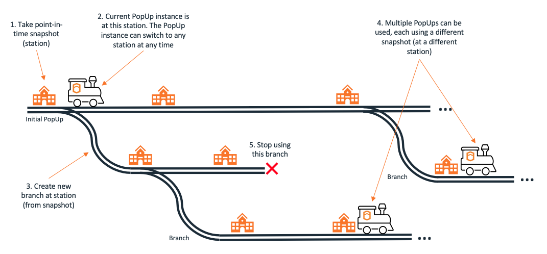 With FastTrack, you can take a snapshot of your entire PopUp at anytime, then rollback your environment to one of your previous snapshots on-demand. Current changes are not lost either, so you can jump back and forth between snapshots and the latest changes to your heart's content, without worrying about losing work.
