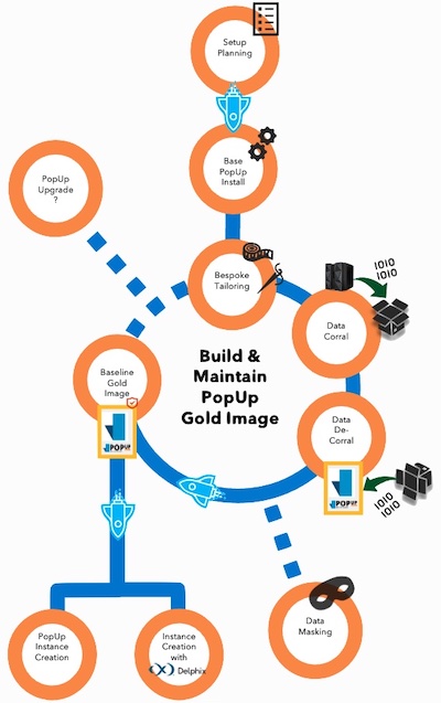- The secure, "Gold copy PopUp" is ingested into the Delphix Continuous Data Engine (virtualization).